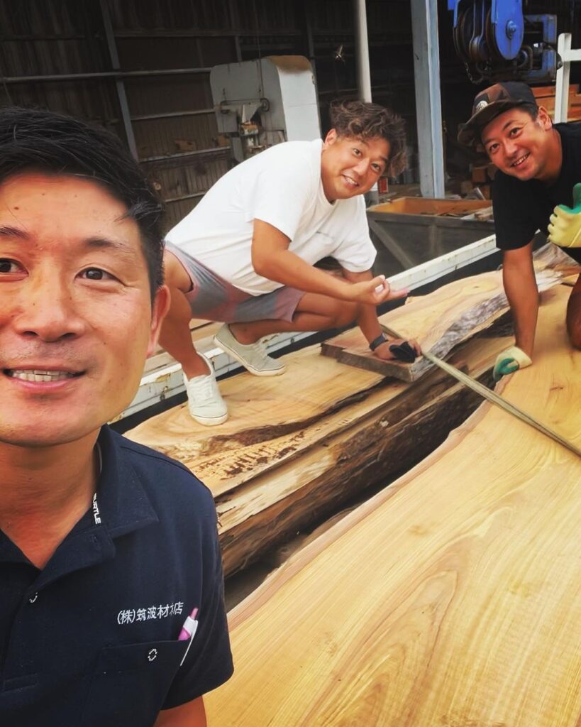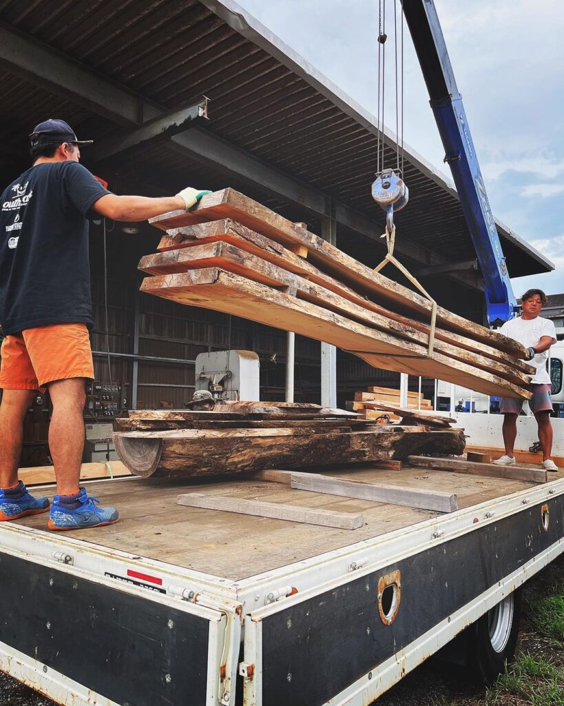 前回同様で一緒にユニック車に乗って小川さんも来てくださいました。こちらの欅の一枚板はパインテック様が運営してる千葉市若葉区にある複合商業施設『South Park』でカウンターやテーブルトップとしてお使いいただきます。